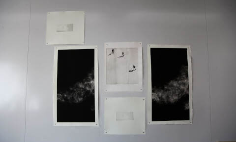 Depuis le télésiège, un projet de taille-douce qui combine plusieurs techniques (aquatine, pointe sèche et manière noire).