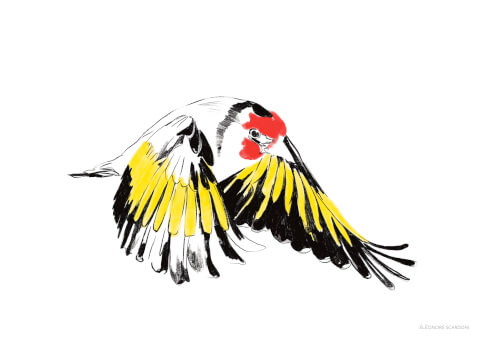 France Radio résume le documentaire radiophonique "L'élégance du chardonneret" de Seham Boutata ainsi : "Le chardonneret est un oiseau rare et prisé en Algérie, en particulier à Alger. C'est là-bas que Seham Boutata a rencontré celles et ceux saisis par son chant et sa beauté, depuis des générations. Alors que l'animal disparaît, sa prégnance dessine en miroir une société complexe. Écoutons l'oiseau." Notre collaboration commence ainsi repérées par l'équipe de Live Magazine, nous nous retrouvons en duo sur scène à plusieurs reprise pour raconter l'élégance du chardonneret. Seham avec les mots, moi avec les images. Nous sommes en mars 2022. Voici une première série d'illustrations réalisée pour la projection sur scène, au rythme et en regard avec le récit de Seham Boutata.